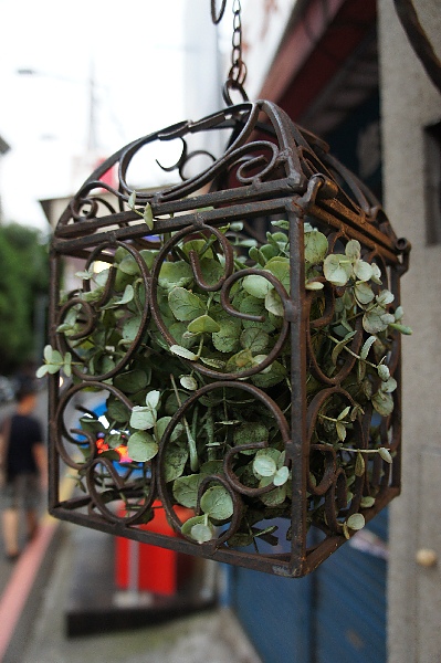 鑄鐵的鳥籠裡關著綠色植物,但卻關不住那蓬勃的生氣。