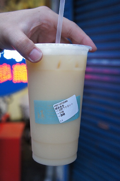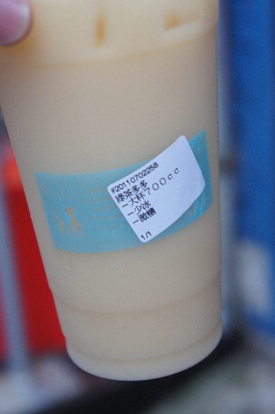 點了一杯綠茶多多,因為前一陣子看到全糖飲料含很多方糖的新聞,所以乖乖地點了微糖少冰。這裡的飲料微糖就真的是微糖,不像有的連鎖飲料店,明明點了微糖,一整杯還是甜得可以膩死螞蟻,都已經少冰了,喝到最後冰塊還是佔了大半杯XD。微糖後的綠茶多多口味非常地清淡且清爽,讓我們不禁納悶平常喝的飲料到底有多甜呀。