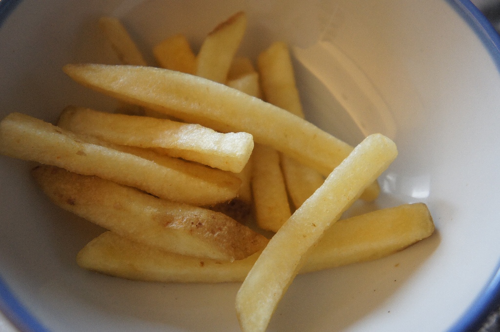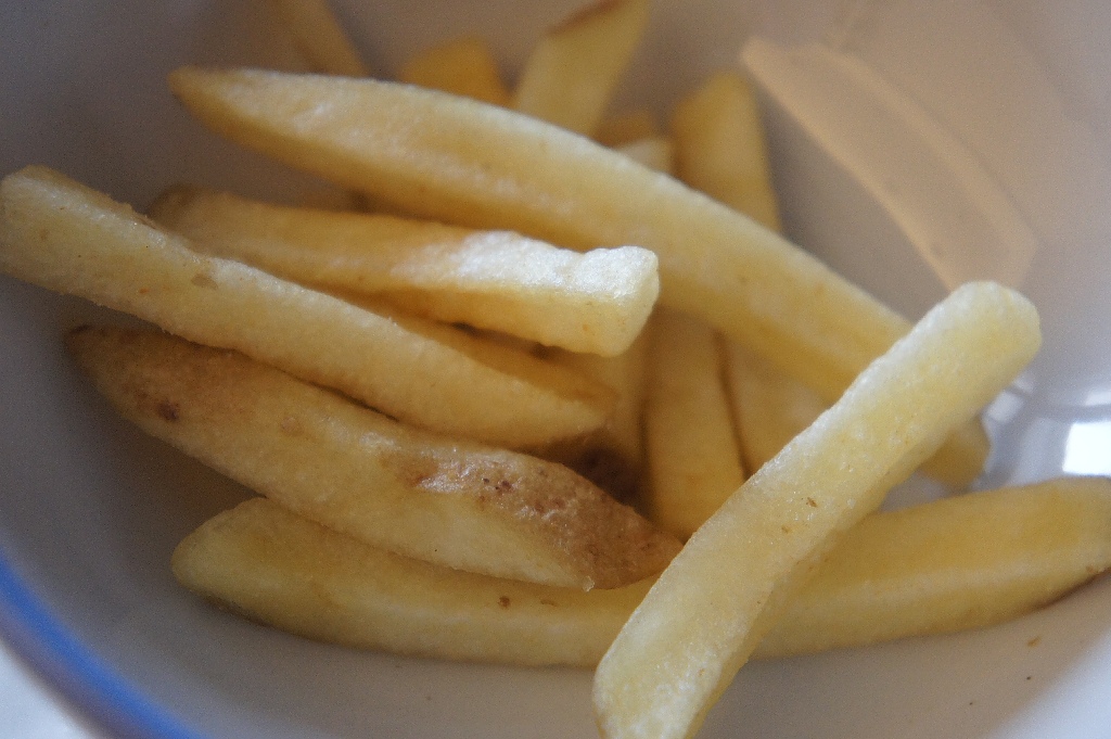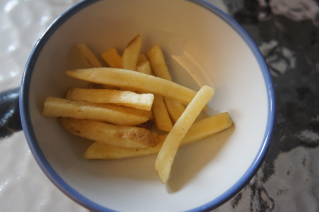 事隔多年再吃還是很好吃,不僅是外觀,連口感也很接近現炸薯條,但相對起來不油膩且很脆口,淡淡的鹹味更加分,只可惜真的太小包了,很珍惜地一根一根慢慢吃還是不到三分鐘就見底,偶爾買來解解饞可以,真要吃到心滿意足,恐怕一次要喀個兩三盒才夠唷!XD