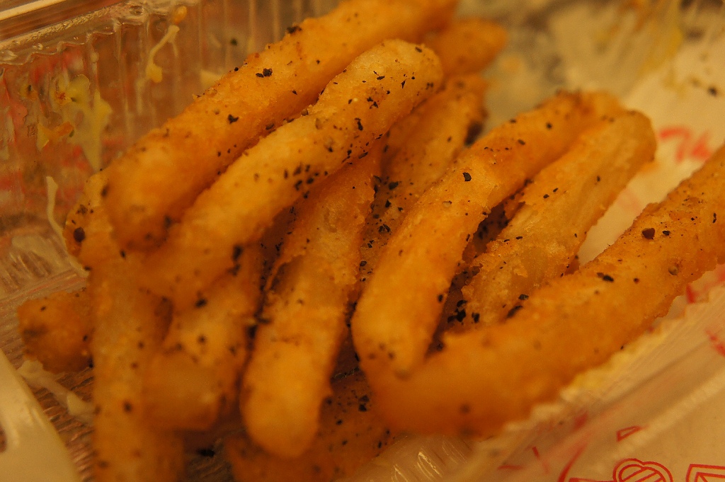 另外點的薯條味道還不錯,外酥內軟,加上黑胡椒粉調味香氣怡人,只可惜份量略少,沒多久就吃完了。