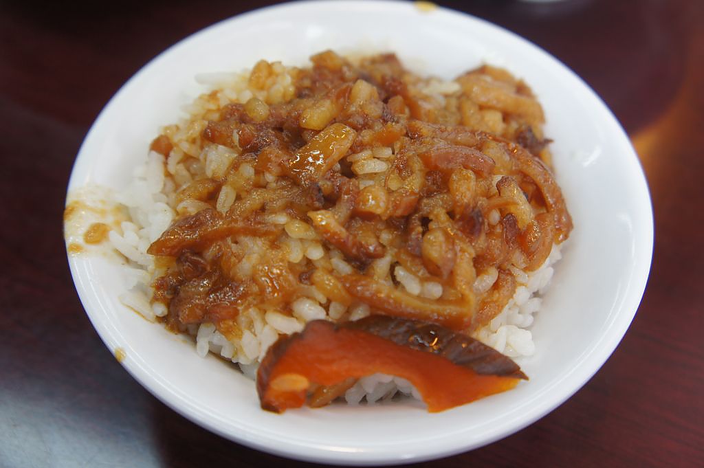 小碗魯肉飯真的非常名符其實的小碗,約莫是用湯匙吃個三、四口就完食的程度。鬍鬚張的滷肉特色大概就在於細長型的肉燥,帶著肥肉的部份化開後會變成悅人的油脂包覆著飯粒,入口有種細微的黏稠感讓我想起新竹城隍廟的神祕商店翁記魯肉飯,但鬍鬚張份量較小且若湯汁澆淋地較多時會顯得較鹹些,兩相比起來我還是比較推薦翁記的滷肉飯,但不可忽視的是鬍鬚張的白飯粒粒分明、軟硬適中且不爛,相當好吃。