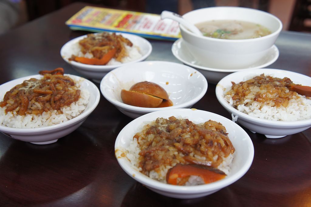 我們當然也是為了特價的小碗魯肉飯而來,所以就一人點各點了兩碗,因為怕人家覺得我們很貪小便宜,所以又另外點了個滷蛋還有貢丸湯,但後來聽到坐在我們後面的男生一個人進來就只點了一碗小碗魯肉飯時才發現自己真是想太多XD。
