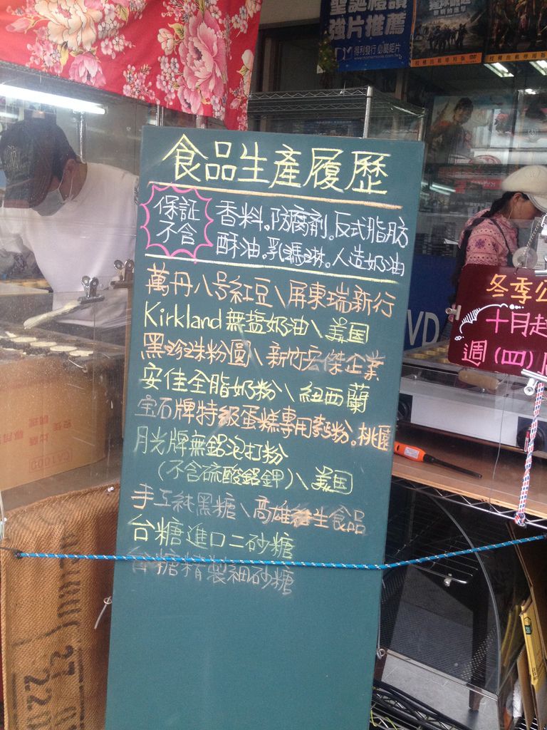小攤旁邊擺了一個小黑板,上面清楚地標示了所有食材的產地來源,在這食安危機四伏的年代,給予客人較大的安全感,當然也為自己帶來不少生意。