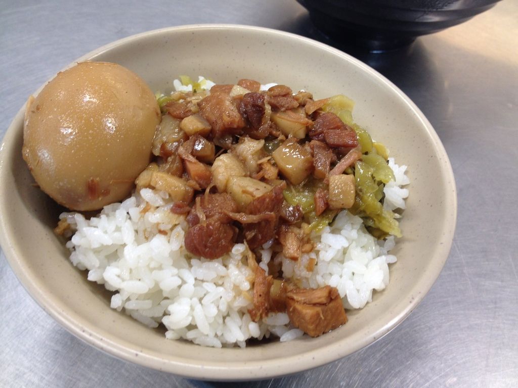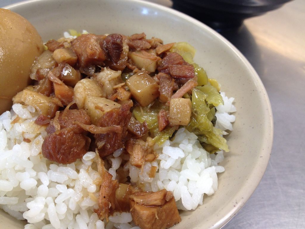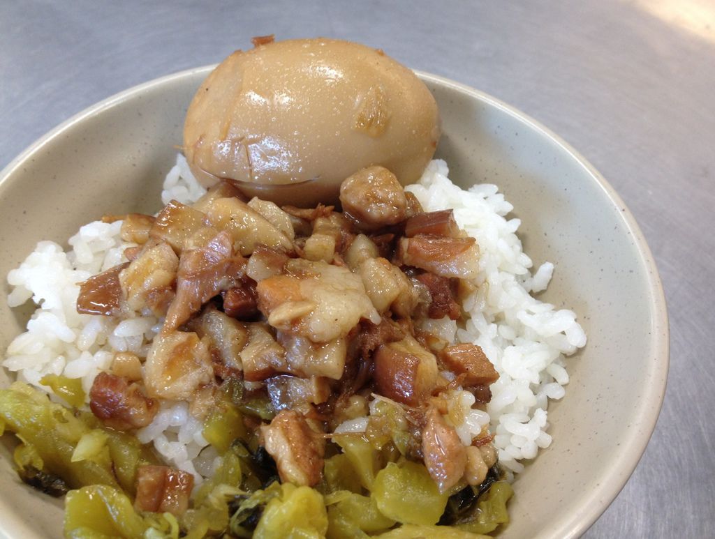 魯肉飯上頭淋的肉燥是肥瘦參半的,肥肉的部份一抿就會化開,加點酸菜增添爽脆口感,如果和石家相比,我是比較偏好石記的魯肉飯些。