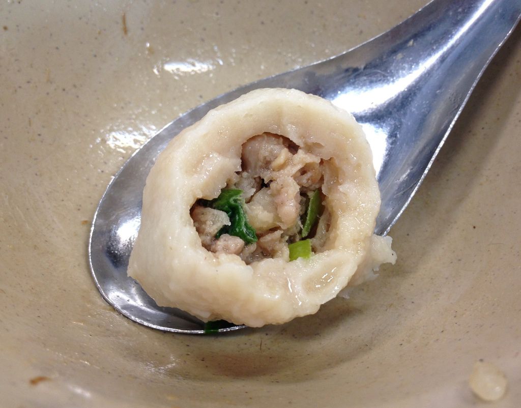 魚丸的部份,石家的魚丸皮薄,豬肉內餡比較飽滿,而且會有爆漿的感覺,感覺上石記的魚丸外皮比較厚一些,咬開後也比較沒有驚艷的爆漿感。